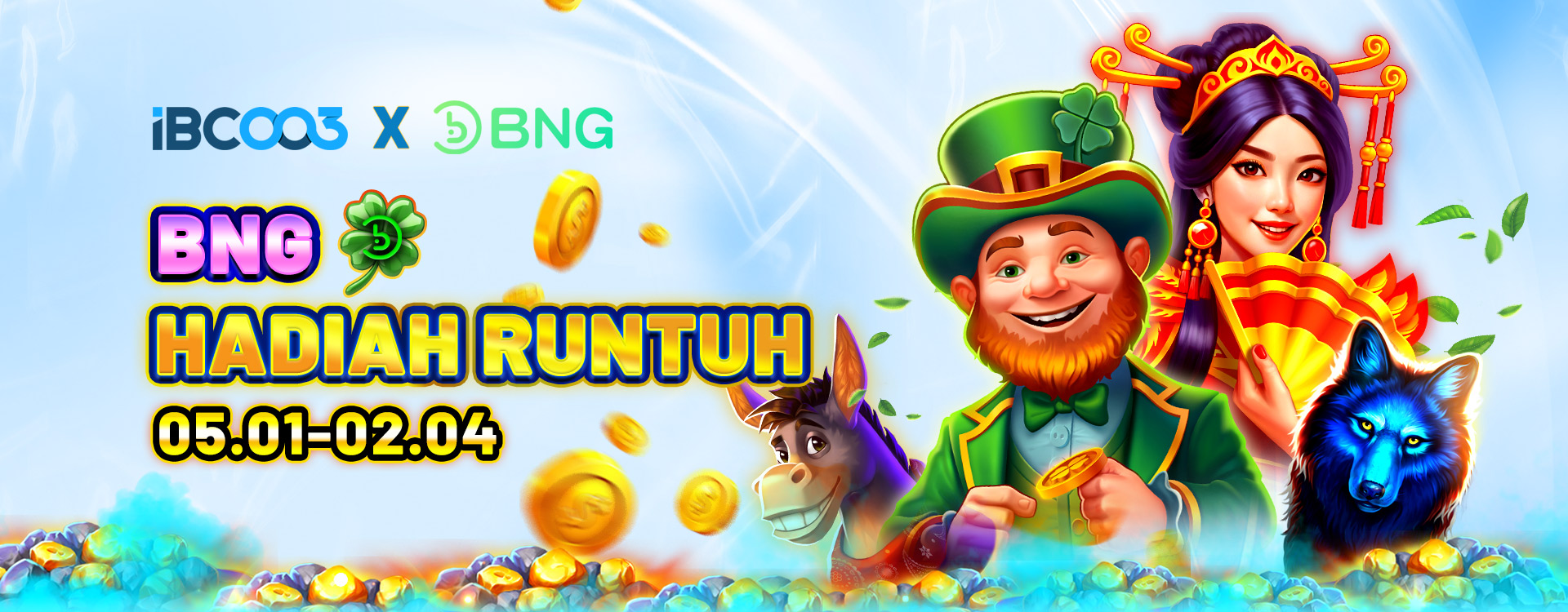 All BNG Games 5th Jan 2026 12:00 PM - 2nd Apr 2026 12:00 PM Participants who place a minimum bet of 1 USD per round on any BNG game during the event period shall be eligible to receive randomly awarded rewards.
